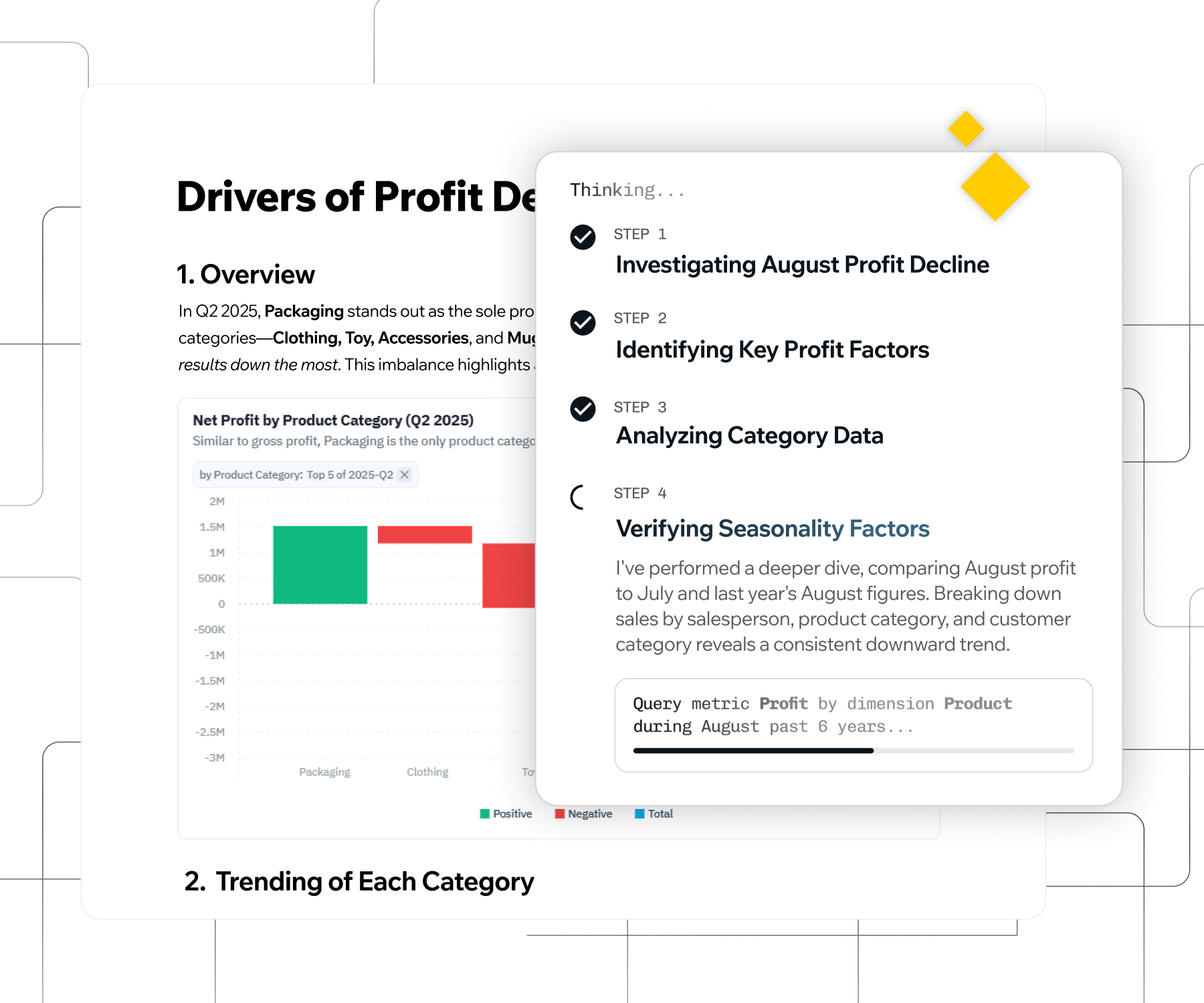 Black-box AI often invents metrics or fabricates logic. Teams see different numbers for the same question. Over time, confidence in both the AI and the data erodes, creating more doubt than clarity.